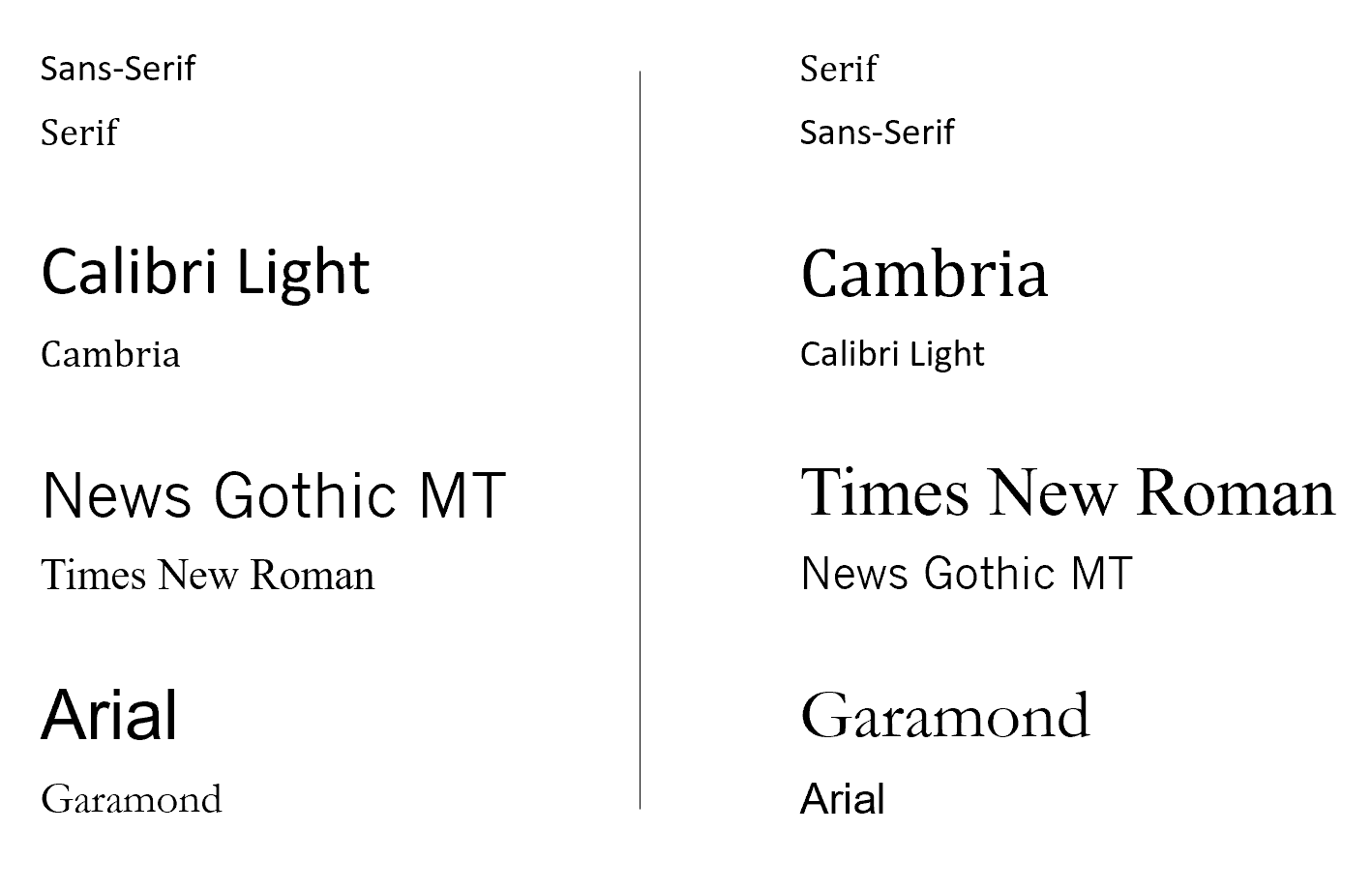 Choose a sans-serif font for headings and a serif font for text, or vice versa. A serif is a little line that runs from the end of a stroke or letter to the beginning. The word “sans” means “without,” hence a sans-serif typeface is one that lacks serifs. Serif fonts are sometimes referred to as “Roman,” whereas sans-serif fonts are referred to as “Gothic.” Consider the samples below, which demonstrate how serif and sans-serif fonts compliment each other.